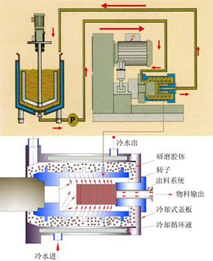 缩短浆料在磨腔内的滞留时间,有效抑制温度上升。通过循环冷却水的冷却,可实现低温砂磨。