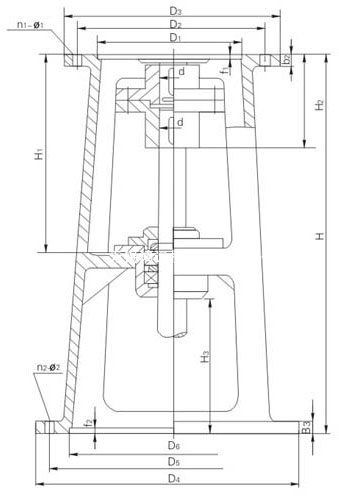 注:图示所注“h2”仅与本样本XLD系列减速机相配,如选用其他型号或其他厂家减速机,“H2”需另计算,Ⅰ型为普通型;Ⅱ型为增高型、除H、H2尺寸加大外,其余尺寸与Ⅰ型相同。