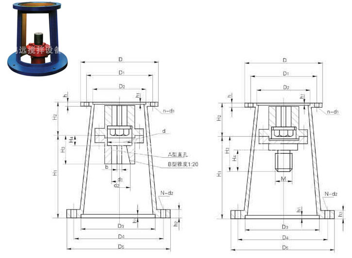 | 机架型号 | 减速机型号 | 输入端接口 | 输出端接口 | H1 | H2 | H3 | H4 | M | 反应罐容积(升) | |||||||||